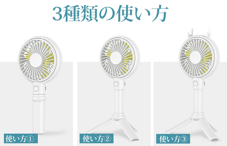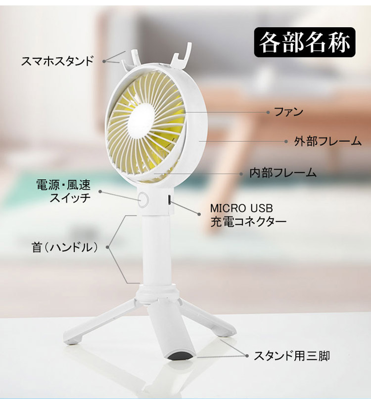 【小型扇風機】コンパクトサイズ スマホスタンド機能あり 三脚 便利さMAX
