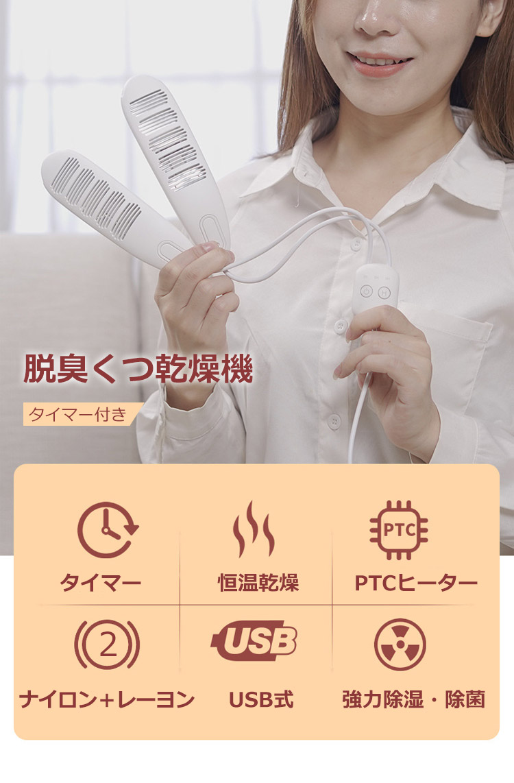 【脱臭靴乾燥機】恒温乾燥 強力除湿 消臭 除菌 梅雨対策 USB充電 2点目半額